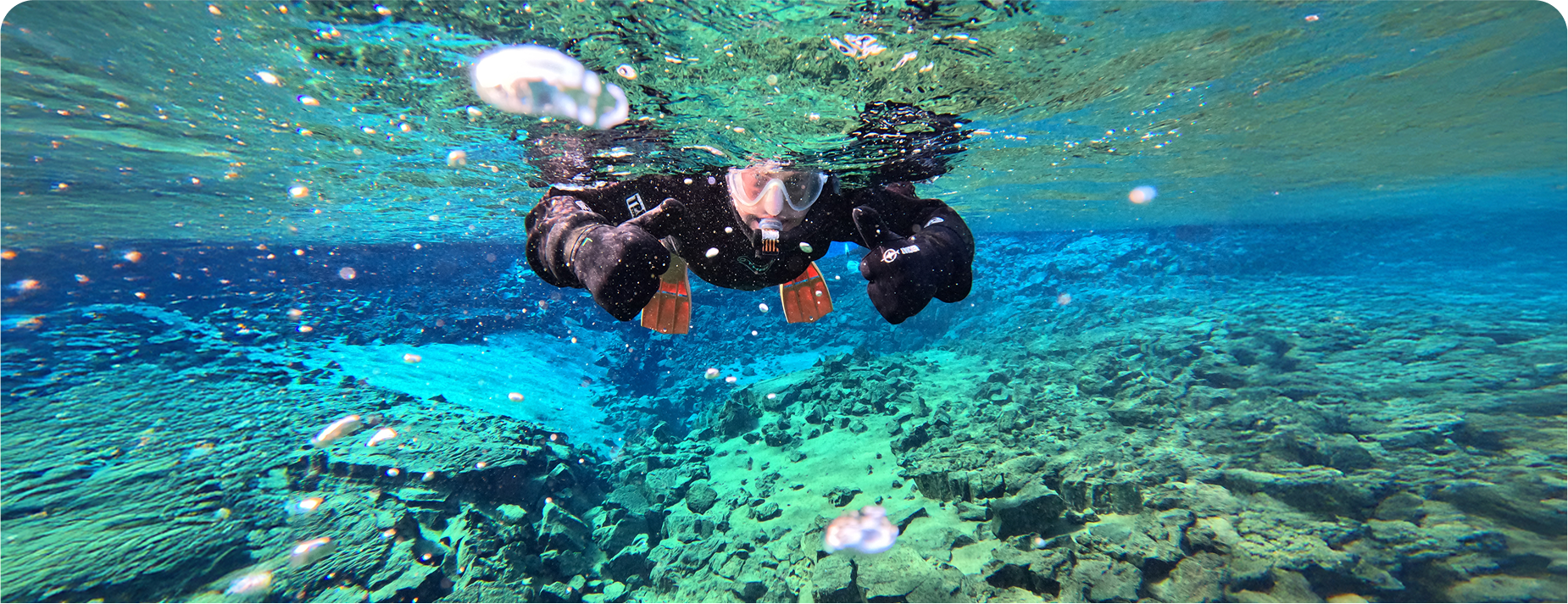 Snorkeling in Silfra is a once-in-a-lifetime experience. You’ll find yourself swimming between tectonic plates, floating in pure, filtered glacier water. Tick this ultimate tour with breathtaking underwater views in the world´s clearest waters off your bucket list. You'll receive GoPro underwater photos after your tour for free.